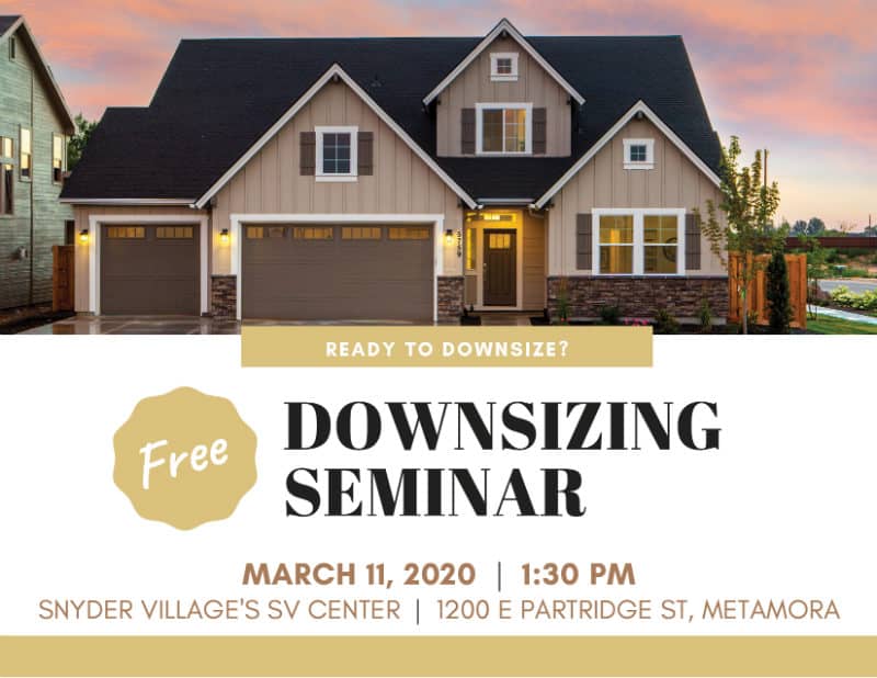 The free seminar is open to the public and will be held Wednesday, March 11, 2020 at 1:30 p.m. in Snyder Village’s SV Center, 1200 E Partridge St, Metamora, IL.