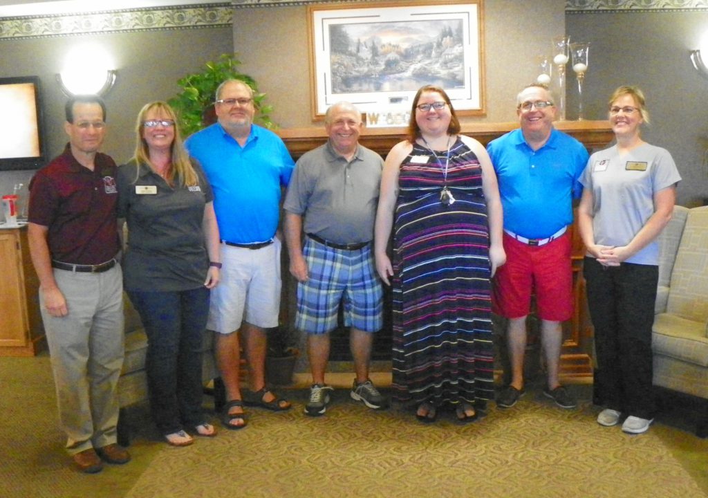 Pictured during the scholarship check presentation are, from left to right: Keith Swartzentruber, executive director of Snyder Village; Angie Watkins, director of Snyder Village Assisted Living; Dale Whittington; Paul Whittington; scholarship recipient Nichole Sparks; Kim Whittington; and Lisa Dean, director of nursing at Assisted Living.